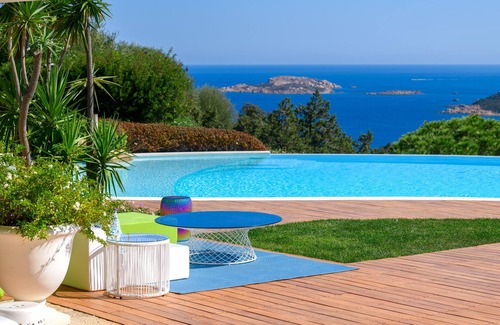 This luxury 8 + 2 bedroom Villa is located on the hill of Pantogia in Porto Cervo with a magic Sea view on the Pevero bay.