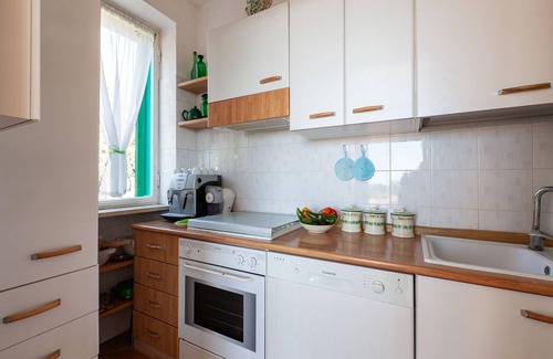 The four apartments, each with an independent entrance, are arranged with 2 on the ground floor and 2 on the first floor. However, since the house is built on a slope, the top-floor apartments can be accessed directly from the gardens. All the apartments have an open-plan living/dining room and a kitchen. The living space is furnished with a sofa, flat-screen TV and dining table with 6 chairs. The kitchens are all equipped with a cooker hob, oven, microwave, fridge/freezer and coffee machine. Each of the apartments also has a private, partly shaded, terrace with tables and chairs for meals al fresco, as well as sun loungers. The upstairs terraces have fabulous sea views and can be joined, simply by opening the gate dividing them.