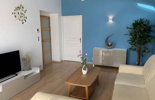 Located in Vallon-Pont-d'Arc, this charming 86 m² villa welcomes up to 6 guests in 3 bedrooms, each equipped with a double bed. You will have a fully equipped private kitchen with a dining area, a spacious living room, and a laundry room. The villa offers air conditioning in the common areas, private Wi-Fi, a television, a washing machine, a baby bed, and a high chair for your comfort. Step-free indoor access makes it easy to move throughout the property.