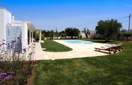 A few kilometers from the sea and immersed in the greenery and quiet of the countryside, Villa Greta is born, a splendid Mediterranean residence with attention to the smallest architectural details according to the Apulian tradition. In an area of approximately 4,500 square meters completely fenced with ancient handmade stone walls, the villa is structured on a single surface with 2 bedrooms, two bathrooms, a kitchen and a large living room with double sofa bed. Externally it has a large patio with relaxation area and living area with a kitchen, with adjoining barbecue and a wood oven. In the front part of the villa, facing the patio, there is the 5 x 11 meters swimming pool set among olive trees, cherry trees and Mediterranean plants of various kinds, with a sunbathing area in natural stone and all surrounded by soft grass. Always outside the service of the swimming pool there is an additional bathroom and a shower. In the rear part of the villa there is an orchard with different varieties of trees rigorously treated with natural methods. The villa is equipped with all the comforts for the well-being and quality of the stay of the guests who choose this structure to live a unique sensorial experience, surrounded by a wonderfully natural atmosphere: thermal insulation of the walls and ceiling, thermal windows, mosquito nets on doors and windows, shutters, air conditioning, radiators, fireplace, dishwasher, electric oven, microwave, toaster, coffee machine, satellite TV, washing machine, iron, hairdryer, clothesline, bed linen and towels, pool beds equipped with sun towels, free WiFi. The area where Villa Greta is located is strategic as it is 6 km from Polignano a Mare and 7 km from Monopoli, both internationally renowned tourist locations with enchanting villages, breathtaking cliffs and equipped beaches. Always in the surrounding area there are many places to visit and all very close such as Castellana Grotte with its 3 km of tunnels and caves that can be visited among the most beautiful in Italy, Alberobello with its characteristic houses called Trulli, Unesco heritage unique in the world and the whole Itria Valley with its characteristic villages such as Martina Franca, Locorotondo, Cisternino up to the "white city" of Ostuni. For the little ones and for animal lovers, always close to Fasano to be exact, there is the zoo-safari Fasanolandia which is the first zoo wildlife park in Italy and among the largest in Europe for the number of species present.