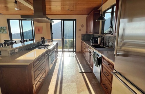 Villa Hermosa is a luxury masonry constructed home located on the hillside overlooking Fish Bay on St. John, USVI. The villa has 3 bedrooms and 3.5 bathrooms. Villa Hermosa provides spacious living areas with beautiful finishes, stonework and craftsmanship. The villa includes a gourmet, fully stocked kitchen with high-end stainless steel appliances and custom mahogany cabinetry throughout. The kitchen flows into a spacious dining and great room area surrounded by large windows that overlook the pool area with vast ocean views of Fish Bay and beyond. A large central staircase leads guests to the second floor where they will find 3 bedroom suites. Each room includes ensuite bathrooms and outdoor patios providing continued ocean views.