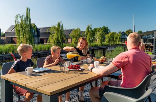 This luxurious holiday home with its own jetty in Balk, Frisian, is very suitable for holidays with the family. The house is located on a small-scale villa park with a direct connection to the Frisian Slotermeer. The water villa has a spacious living room with a comfortable seating area, a smart TV and a spacious dining table. The furnishings are very modern. The villa has a downstairs bedroom with an ensuite bathroom. Upstairs there are 3 bedrooms, 1 with an ensuite bathroom and a separate bathroom. So a lot of luxury and privacy. Balk, located in the Frisian Lake District, is characterized by its historic center located on the Luts River, part of the Eleven Cities Route. You can shop extensively along the canal or sit at one of the cozy terraces. The unique villages along the Elfstedentocht route are also definitely worth a visit. The open kitchen is part of the living room and is equipped with luxury appliances. Through the French doors in the living room you can easily reach the garden with a lovely terrace on the water.