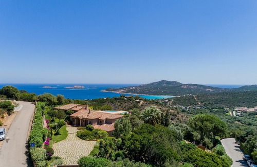 Villa Peretti is a prestigious property with a private garden and swimming pool, with a breathtaking view of the sea, located on the promontory of Pantogia, near Porto Cervo in Sardinia.