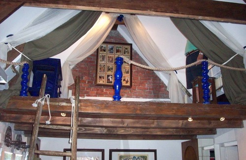 Large room-room with double sofa bed, separate kitchen and equipped with dishwasher and microwave, bathroom with shower, 3rd bed if needed, in the mezzanine-attic with double window accessed with a ladder staircase.