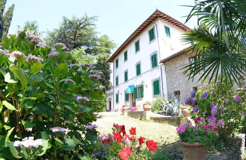 Magnificent villa dated 600, completely renovated with period furniture surrounded by a completely fenced huge garden/property of 50’000 sqm! Wonderful swimming pool at the exclusive use of the guests (8 x 4m, depth: 1.20m) Parking within the property. The owner lives in the dependence, attached to the villa, with independent entrance – he will obviously respect to the full guests’ privacy. The garden and the swimming pool are at the exclusive use of the guests. PETS ALLOWED ON REQUEST. There is a little chapel next to the villa, perfectly restored, ideal to organize a private wedding. The villa is located at the border of the village of Uzzano, 900 m from a grocery and shops, 500m from an excellent restaurant. Guests may reach within an easy reach Montecatini Terme at only 7 km, Monsummano at 13km with its splendid therapeutic springs Grotta Giusti and golf course, at 30 km from Lucca, 60 km from Florence, 45 km from Pisa and the sea. You may have wonderful strolls in the surroundings – discover the little villages of the area: Buggianio, Uzzano Castello, Massa e Cozzile. Attractions The villa is located at the border of the village of Uzzano, 900 m from a grocery and shops, 500m from an excellent restaurant. It is possible to recharge electric cars at the nearby supermarkets. Guests may reach within an easy reach Montecatini Terme at only 7 km, Monsummano at 13km with its splendid therapeutic springs Grotta Giusti and golf course, at 30 km from Lucca, 60 km from Florence, 45 km from Pisa and the sea. You may have wonderful strolls in the surroundings – discover the little villages of the area: Buggianio, Uzzano Castello, Massa e Cozzile. Parking within the property. The owner lives in the dependence, attached to the villa, with independent entrance – he will obviously respect to the full guests’ privacy. The garden and the swimming pool are at the exclusive use of the guests. There is a little chapel next to the villa, perfectly restored, ideal to organize a private wedding! Interior Description Entrance on the ground floor: spacious entrance hall with table, wooden benches, dining room with dining table, fire-place, fully fitted kitchen with induction hob, electric oven, microwave, dishwasher, fridge/freezer, coffee-machine, fire-place, angle with 2 upholstered chairs, SAT-TV, exit onto a patio equipped with table, chairs, barbeque, sun-umbrella, fountain, 1 ante-bathroom with marble basin, 1 bathroom with shower, wc, bidet, basin, locker room. Marble staircase to the 1st floor: spacious, centrally located, living room with table, chairs, upholstered chairs, 2 pouf beds, parquet tiled floor, all 4 bedrooms are connected with this living room. 1 spacious double bedroom with cupboard, chest of drawers, SAT-TV, exit onto a big terrace (40 sqm) with swing and stunning views onto the hills, 1 bedroom with 1 double bed with cupboard, SAT-TV, terracotta tiled floors, fresco – it is said that Napoleon Bonaparte slept in this bedroom, 1 double bedroom with cupboard, SAT-TV and 1 double bedroom with exit onto a terrace (12 sqm), cupboard, SAT-TV – connecting door from this bedroom to the French sized bedroom, 1 big and beautiful bathroom with green marble, tub, separate shower, basin, wc, bidet. Stairs to the 2nd floor: 1 big bathroom with tub/shower, washing machine, wc, bidet and basin. The villa is furnished with great care, cheerful painted walls (pink, light blue, green and red), beamed ceilings, terracotta tiled floors, period furniture, luxury tapestry, air-conditioning in all bedrooms, wifi included.