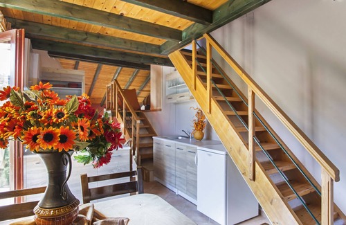 In the last floor there is living room with sofa bed, fire place, kitchen fully equipped, two bathrooms with shower and hydromassage. There are also two traditional attics in one there is double bed and in the other there is single bed!