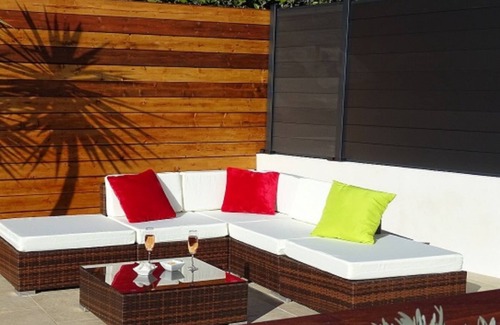 The patio sofa awaits you to read, chat or enjoy an aperitif: tapenade, sun-dried tomatoes, olives, what do you prefer?