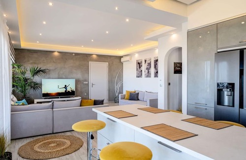Tastefully decorated, our air-conditioned offers self-catering accommodation opening out to a spacious private yard with a built-in sofa. The house includes two spacious sunny bedrooms with a comfortable double bed and high-quality cotton linens found at all high-end hotels. It also has a living room with flat-screen TV 65 inch and two sofa-beds, a fully equipped kitchen with refrigerator, stovetop, oven, coffee machine, hot water boiler, a dining table for four persons and a bathroom with shower, rain-type shower head and high-quality toiletries. It also provides iron facilities and hair-dryer.