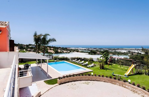 Overlooking the sea, the villa Marigù con spa e piscina with step-free access in Scicli impresses guests with its fantastic views. The 2-storey property consists of a living room, a well-equipped kitchen, 8 bedrooms and 8 bathrooms as well as an additional toilet and can therefore accommodate 16 people. Additional amenities include high-speed Wi-Fi (suitable for video calls) with a dedicated workspace for home office, a TV, air conditioning, a washing machine, beach/pool towels as well as children's books and toys. In addition, a private sauna is available for your use. 3 baby cots and 2 high chairs are also available. This accommodation features a private outdoor area with a fenced pool, whirlpool, garden, open and covered terraces, balcony, barbecue, playground, and outdoor shower.