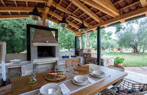 Vila My Vladan is a place where you will relax and escape from stress. The house is located in a secluded location with no neighbors, and offers guests privacy and peace. It is a place where you can enjoy peace and fresh country air and is near the town of Rovinj, and located only 3 km from the city beach Cuvi as well as the city center. There is plenty of parking and everything is wooded with oak trees. Surrounded by olive groves and 10,000 m2 of forest as well as 3,000 m2 of private yard, the villa is truly located in the middle of greenery. In October, when the olives are ripe, you can help the owners harvest and taste their extra virgin olive oil. At your disposal are 4 bedrooms, each with a private bathroom, a living room with a dining room and of course - a private pool. Fall in lovewith this beautiful villa as it is worth a visit.