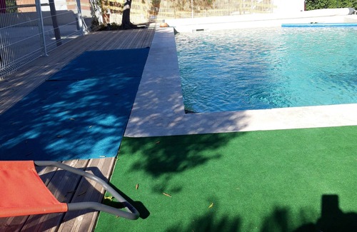 Located in Montmeyan. Modern villa with heated swimming pool, with a capacity of 6 people, you will find all modern comforts.(you benefit from a wifi connection, bowling green, trampoline,) The kitchen is equipped with an American fridge, dishwasher, capsule coffee machine. 3 bedrooms and 2 independent toilets, private parking on site.