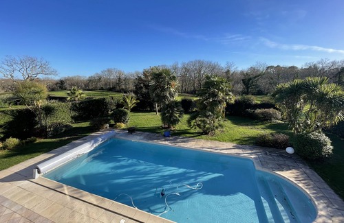 Villa on the Makila golf course near Biarritz is located in Bassussarry. Villa on the Makila golf course near Biarritz provides accommodation, featuring TV, Fireplace/Heating, Pool, among other amenities. This House features TV, Fireplace/Heating, Pool, to make your stay a comfortable one.