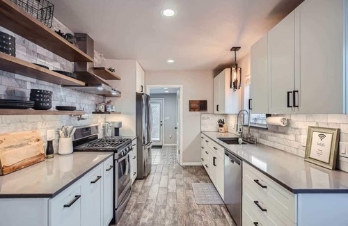 Updated 2-bed, 2-bath home is just minutes from dining, bars, and local shopping downtown Georgetown. Amazing outdoor activities surrounding...Lake Georgetown for a day of fishing, hiking, and water skiing, or The Blue Hole along the San Gabriel River trail... You probably won't be home much, but when you are...Full kitchen for cooking your own meals, amazing outdoor space w/TV, ping pong table in garage, comfy furniture, & great table & for working remotely. Monthly/Weekly discounts built in!