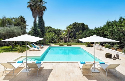 The villa is surrounded by a beautiful Mediterranean garden, with large terraces and a private swimming pool.