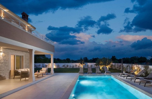 Villa Simona Residence is located near Rovinj and is an excellent choice for a relaxing holiday. The modern villa with pool offers four bedrooms for eight guests.