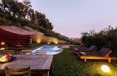 Villa Thalia features private pool in the open air, well equipped with umbrellas, comfy sunbeds and outdoor dining space; sunbathe under the greek sun and at night relax by the pool and you will be accompanied by the clean and starry sky. The complex comes with endless mountain views, farms where you could be guided in and amazing organic private gardens extended on 15 acres.