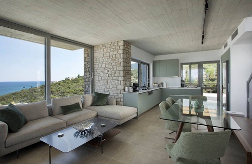 Nestled on the slope of a verdant seaside hill and overlooking the sea, Villa Thymari is a unique property of modern design that will entice you to leave your hectic days behind and experience the joys of tranquility.