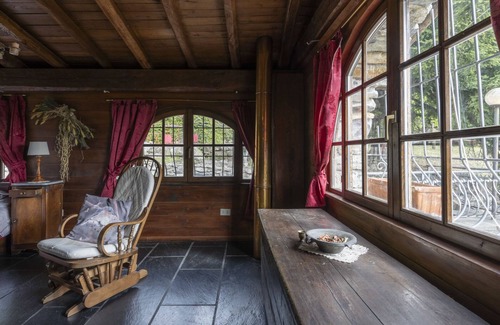 "Villa tra i Cedri", 5-room villa 250 m2, on the ground floor. Tasteful and cosy furnishings: living/dining room with 1 double sofabed (140 cm, length 200 cm), open-hearth fireplace. Exit to the balcony. 1 double bedroom with open-hearth fireplace. 1 double bedroom. Open kitchen (oven, dishwasher, 4 gas rings, toaster, kettle, electric coffee machine). Shower/bidet/WC. On the lower ground floor: kitchen-/living room (oven, 4 gas rings). Exit to the garden, to the terrace. Upper floor: ceiling height 180 cm with rooflight with 1 bed (90 cm, length 200 cm), 1 french bed (120 cm, length 200 cm). Bath/bidet/WC. Wood heating. Heating available only from 15.10. to 30.04. Parquet floors, natural stone floors. 2 terraces 40 m2, large patio. Terrace furniture, barbecue, deck chairs. Panoramic view of the valley and the countryside. Facilities: washing machine, children's high chair, baby cot for up to 2 year olds, hair dryer. Internet (WiFi, free). Maximum 1 pet/ dog allowed. IT008061C2OJLC6KH4