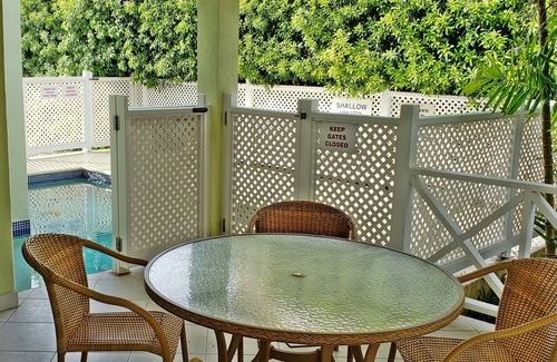This 3 bedroom, 3bathroom Villa is located on a quiet street, in a gated community on the south coast of the island. The property is located at the end of a cul-de-sac with very limited traffic flow and makes a wonderful home away from home for couples and families alike (Occupancy permitted - 6 people with a maximum of 5 adults). Children are defined as being 12 years of age or under. Two of the bedrooms are located on the upper floor. Both bedrooms are large and each has its own ensuite bathroom making it an ideal rental for two couples. The third bedroom is located on the main floor and contains a double bed. There is a separate bathroom (with shower) adjacent to this bedroom. All of the bedrooms are air conditioned and are also equipped with ceiling fans. The living area is spacious and contains a fully equipped kitchen and eating bar. The dining area seats four, with additional seating for four on the patio where advantage can be taken of the warm temperatures and pleasant tropical breezes. The living room is equipped with a TV with cable. There are ceiling fans in the living room, dining room and kitchen. Wireless internet is available in the house.