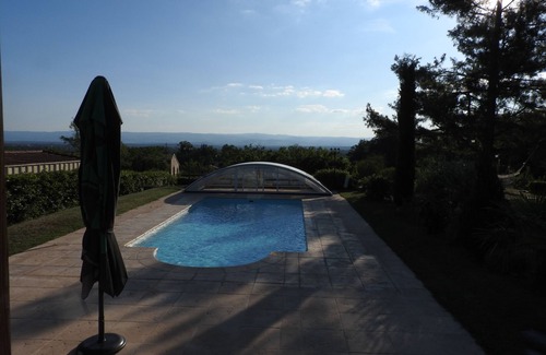 Villa with a big stay (living room and dining room), opened on a very equipped kitchen and a playroom and of leisure with French billiard, library and chimney. The night is composed of four bedrooms and a desk with extra bed and piano, a bathroom with bath, a bathroom with shower and a separate toilet. The large garden planted with apple, pear, cherry and plum trees offers a wide open view of the plain of Forez, a heated pool and covered by a shelter not overlooked and a shaded terrace with gas barbecue. The villa is located near Lyon, Gallo-Roman city with its museums and typical provincial streets and Saint Etienne, capital of world-famous design. It offers the possibility of many leisure activities for the whole family (horseback riding, hiking, mountain biking, tennis, cinema, ruins of an old medieval castle, cinema, bowling, thalassotherapy, acrobranche, climbing, casino games, park of attraction and zoo, night club and cultural outing at the castle of Rozier and golf nearby ...).