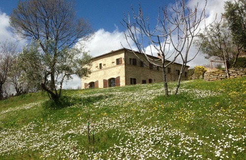 Among the green hills of the beautiful region of Marche, you can find 'Villa dei Ciliegi', a typical country house. Enjoy the beautiful swimming pool and the sun terrace with a stunning view. 'Villa dei ciliegi' is between the Sea and the Mountains. The station ski of Sarnano and the coast village of Porto Sant'Elpidio are at only 25 km. The archaelogical site of Falerio Picenus is at only 3 km. A short distance there are local shops where you can find typical and regional specialities.
