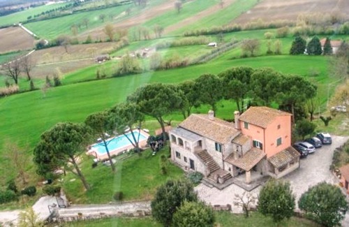 The villa lies in southern Umbria in a quiet area around 2 km from the small town of Sambucetole and 7 km from the medieval town of Amelia. Rome is 60 minutes away by car and Florence about 2 hours; you can reach Spoleto, Todi, Marmore waterfalls and Terni in 30 minutes and Perugia, Assisi and Orvieto in one hour. There is a beautiful 13,5 x 6,5 meter swimming pool with diving board. The property is available for holiday rentals from May 2024 and is all for your private use. There are 2 buildings on the property. The main villa (up to 9 sleeps) and a small cottage with 2 additional sleeps. The booking amounts include use of the villa and dependance (max 11 persons). The property, surrounded by woods and fields changing colour depending on the season, offers many places to relax: outdoor areas with tables, chairs, sunny lounges, as well as a beautiful winter garden on the ground floor. It's possible to eat outdoor under the large porch with barbecue and stone oven. The lawn between the main villa and the pool is equipped with table and chairs to eat outdoor (under the shadow of the trees) and enjoy the panoramic sights on the surrounding landscape. The ground floor is to be reached through a veranda with table and chairs, from where you enter a large living room with fireplace, sofas, plasma TV and Dolby stereo surround. Next the dining area and a fully equipped kitchen. At the same floor there are also a bathroom and a room with billiard. On the first floor there is a living room with fireplace and access to a terrace where you can enjoy a wonderful panorama. There is also a bedroom with double bed, en-suite bathroom and acces to a small veranda. The floor is completed by another bedroom with double bed (it is possible to add an extra an extra bed), a bedroom with 2 single bed and bathroom. On the 2nd floor there is a bedroom with 2 single beds and en-suite bathroom. The small cottage at 20 meters from the villa has one large room with double bed, kitchen and a bathroom. All the bedrooms of the villa and the depenance have air conditioning.