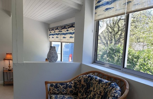 Going back to the hall, a couple of steps lead down to the lower hall with conservatory furniture providing a separate quiet reading/relaxing area. From here, bedrooms 3 and 4 are accessed. The hall contains massive double glazed windows, keeping it bright and light. It has roller blinds to keep the sun out during hot evenings.
