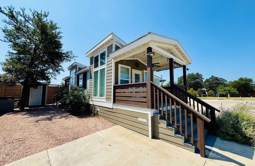 Rustic shiplap siding in living and kitchen areas. High quality, OLED TV with surround sound. Electric fireplace, front and rear decks with dining table on rear deck. Vaulted ceilings in living room and bedroom with floor to ceiling windows. Barbecue Grill and fire pits plus hammock area are steps away. Swimming pool and hot tub on property. Washer dryer combo in unit. Historic 1902 Swedish organic farm on property with seasonal farmers market on Saturday mornings. Grocery store down the street, barbecue and interesting “Sign Bar” also minutes away. 5 miles east of downtown Austin with numerous restaurants and micro breweries in the east Austin area.