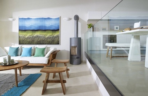 Open-plan living rooms, Satellite LED TVs & Apple TVs, energy fireplaces, docking stations, linen sofas