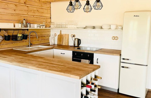 This beautifully newly built, stylishly decorated chalet offers a spacious and comfortable stay in the stunning Šumava National Park. With an area of 210 m², the property accommodates up to 15 people, making it perfect for larger groups or multiple families looking to enjoy the peace and beauty of this unique natural area. The chalet consists of a ground floor, an attic studio, and an attic apartment, each unit equipped with its own bathroom and kitchen or kitchenette for ultimate comfort and privacy.The layout of the property is as follows:• Ground floor (100 m²): This light and spacious floor combines the kitchen and living room into a large, open-plan area of 50 m². The living room offers a comfortable seating area with a sofa bed for two additional guests and has direct access to a spacious terrace where you can relax and enjoy the outdoors. The ground floor also has two large bedrooms of 22 m² each, both featuring a comfortable double bed (180 cm), an extra bed (100 cm), and ample storage space. Additionally, there is a modern bathroom, a separate toilet, and a convenient ski room/bike storage.• Attic studio (32 m²): This cozy studio accommodates 3 people and is perfect for a small group. It features a luxurious 180 cm beechwood bed and a sofa bed for additional sleeping space. The studio comes with a fully equipped kitchenette with an oven and a dining table. The bathroom includes a bath, shower, and toilet – everything you need for comfort after a day of adventure in nature.• Attic apartment (50 m²): This spacious apartment has two comfortable bedrooms, both with access to a balcony where you can enjoy the view. The first bedroom has a double bed and a sofa, while the second bedroom is for 2 people and also offers a TV for extra relaxation. The kitchen is fully equipped, and there is a dining table for four people.The property also boasts a beautiful garden with an outdoor fireplace, which can also be used as a barbecue, allowing you to dine outside under the stars in the evening. There is a playground for children and ample parking for up to 6 cars.Located on the edge of the picturesque village of Borová Lada, surrounded by unspoiled nature, this chalet offers the ideal base for both active adventures and relaxation. Explore the beautiful hiking and biking trails in the area, or visit the famous Chalupská slať just 1 km away. In winter, you can enjoy excellently maintained cross-country skiing trails.Whether you’re seeking adventure in nature or simply want to unwind, this chalet provides everything you need for an unforgettable vacation in the beautiful Šumava Mountains!