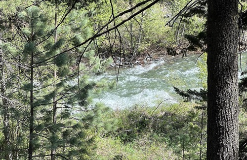 The main attraction from your cabin will definitely be the river, which is usually crystal clear and beautiful in color. Collapsable REI river chairs are provided for the enjoyment of our private beach and property. In early spring you can watch rafters and kayakers fight the rapids from the comfort of your deck. In late summer the river is perfect for soaking your feet and cooling off. We also have several picnic tables around our property for enjoying homecooked meals while taking in views and sounds of the river.