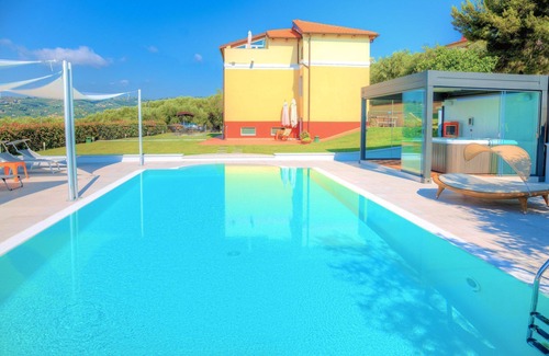 The villa offers a swimming pool, a large 6-seat Jacuzzi, garden, and an incredible view of the Ligurian sea.