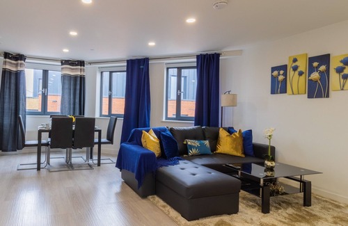 Stylishly luxury two bedroom Apartment in the heart of Bedford Town Centre within walking distance to shops, restaurants, Cafes and pubs. This is perfect for Professionals or Families looking for comfortable stays while travelling for work or Holiday in Bedford. The Apartment is furnished to a very high standard providing maximum comfort for our guests and comes with free Gym & Yoga Studio, free unlimited fibre optic wifi internet, smart TV with Netflix and has FREE Parking.