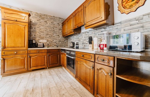 The kitchen is fully equipped with everything needed for a culinary adventure or a quick snack. It is designed with modern appliances and ample counter space to make cooking a pleasure. Each of the two bedrooms is furnished with a double bed, offering a comfortable retreat after a day of exploration. Should you need additional sleeping arrangements, an electric inflatable bed can be prepared in the living room, capable of accommodating two more guests.