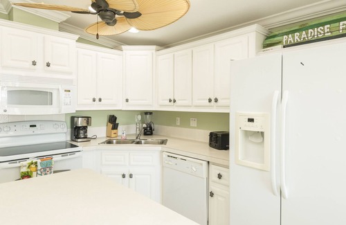 Canal Front 35 Seawall - Simply elegant describes this 2 Bedroom with 2 full Bathrooms, canal front stilt home! This home features a 35 concrete seawall with access to the Gulf & Ocean! Ocean views from the dock and porch! Dock amenities include dock posts, cleats and fish cleaning table. Covered porch with comfortable lounging furniture overlooking the water. Interior features tile flooring, mounted living room flat screen TV, full line of appliances, washer, dryer, ceiling fans and central A/C. Sleeping accommodations include a Queen size bed in the Master bedroom and a private bathroom, a Queen bed in the Guest bedroom. Additional sleeping accommodations include a sleeper sofa in the living room. Downstairs features access to a secure storage room, 2 bikes, bait freezer and covered parking. Additional amenities include in-home free WIFI, basic cable, and gas grill.