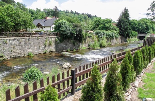 Cosy 2-family house "Vrchlabí", 2 storeys. In a quiet position, 10 m from the river, in a cul-de-sac. Private: garden 400 m2, swimming pool heated (9 x 3 m, depth 120 cm, seasonal availability: 15.Jun. - 15.Sep.). Terrace, garden furniture, barbecue. In the house: sauna (extra). Massage (extra). Parking at the house. Shop 200 m, grocery 100 m, supermarket 200 m, restaurant, bus stop 200 m, railway station 1 km, outdoor swimming pool 3 km, indoor swimming pool 14 km. Golf course (9 hole) 11 km, tennis 3 km, mountain railway 1 km, ski lift 1 km, ski school 1 km, sled run 14 km, cross country ski track 3 km, children's playground 300 m. Please note: the owner lives in the same residence. The owner has a dog.