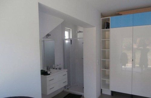 The house has 3 bedrooms, there is the master bedroom with seperate bathroom, 1 bedroom with a double bed and a third bedroom with a bunk bed for 3 perons to sleep (we also have a baby bed that can be put in any of the rooms). There is a second bathroom with bath and shower and a seperate restroom.