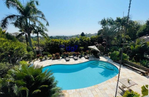 Lush garden, wonderful view, swimming pool, barbecue area surrounded by a water mirror, balconies with a hammock and everything to the sound of birdsong. Interior covered with lots of stone, hardwood floors, fine furniture, vintage and very comfortable. The mansion is located in a closed street with automatic gate, in a large condominium (great for walks) surrounded by a piece of the Atlantic Forest.