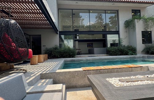 New home construction in the center of Avandaro, walk to town with all the restaurants and activities the town has to offer. There is a private pool in the backyard. There is also a jacuzzi, a full BBQ area, indoor and outdoor dinning, gas fire pit by the pool and jacuzzi. Outdoor shower and bathroom (see costs for gas heat in the details area. )