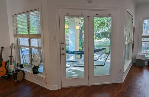 Stay right next to downtown in a creative and livable two-story duplex unit, perfect for remote workers. Steps from historic Pease Park, you'll also be within walking distance from much of downtown, the University of Texas, and the trails on Ladybird Lake.