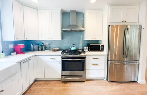 Nestled in the amazing coastal community of Leucadia Encinitas, this neighborhood is one of the true gems in San Diego! With amazing beaches and restaurants in walking distance the vacation of your dreams is up to you and your family. Located next to Stone Steps beach and in between the famous Moonlight and Beacons beaches you have all sorts of options for sun, surf, and sand! Within 20/30 minutes you have access to Lego Land, the Zoo, Balboa Park, Wild Animal Park, Wineries, micro breweries, the convention center and much much more! The grassy front yard or the recently turfed backyard includes a kids playhouse and tons of toys to keep the kids entertained! So you can just sit back and relax as the yard is begging for your entertainment with an outdoor tv and a built-in grill and kamado joe combination along with a fridge. The converted garage has panoramic doors to open it up so you can enjoy a workout, yoga, gazebo style office, kids game room, or just a little more shade for post beach activities. Please note: we no longer have a trampoline.