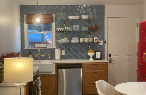 The home is so darling, curated and considered for your enjoyment. Two bedrooms and one bath will comfortably house your party and the kitchen is fully stocked and functional with all necessary appliances and cooking utensils, should you desire to stay in.
