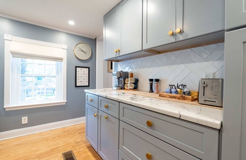 This elegant home boasts three bedrooms with two queen beds, a king bed, and a pull-out couch. It features a modern kitchen, cozy living spaces, and updated bathroom, providing a perfect balance of comfort and style. This charm of this home is on display with Philadelphia centric decor that play off the character of the city.