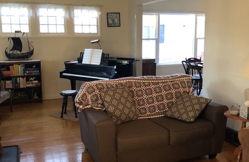 This home has lovely hardwood floors, a baby grand piano and a beautiful electric fireplace. The house was built in 1924 and we are the 3rd owners. We take great care in preserving the natural beauty and the integrity of our lovely childhood home. The house is within walking distance of downtown, the high school, Bob Dylan's boyhood home, the Memorial Ice Arena , and within a few miles of many lakes. There are many outdoor activities: boating, biking, fat tire biking, skiing, fishing, and bird watching in Sax Zimm Bogg.
