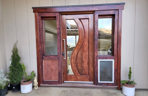 Gorgeous 4 1/2 bedroom executive home overlooking the valley where the Wanaka Warbirds practice. Only 4 miles from Wanaka airport and right on the approach. No better place to watch the action and if you care to go to the airfield you will be coming from outside town so you'll have less traffic. You can even watch the action from the jacuzzi!