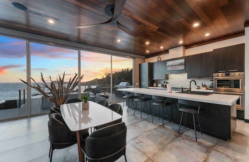 Wander Anchor Cove is a modern concrete, glass, and steel home with floor-to-ceiling windows set on 5.25 acres overlooking our own private cove with over 1,800 feet of ocean frontage. This incredible coastal escape overlooks rock formations and islands where you can enjoy the sunset and whale-watching views year-round from the 6-person hot tub, or permanent bench on the bluff top.