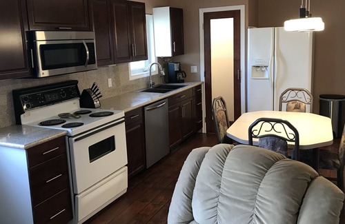 Relaxing two bedroom Cabin located one block from the main beach, pier, and boat launch, a 5 minute walk to stores in town, and a 20 minute drive to Clear Lake in Riding Mountain National Park. The interior has been completely renovated and includes a fully equipped kitchen with fridge, stove, builtin microwave and dishwasher, heated marble floor tile and oversized walk-in shower in the bathroom. The cabin also has central heating/air conditioning, free WiFi, and a 53” Sony HDTV with PVR Satellite and DVD player. There is a small attached deck with patio furniture and bbq and a firepit & picnic table in the back. High chair, portable crib/playpen, and beach toys available upon request.