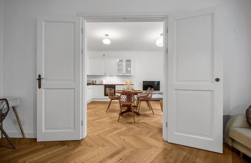 This spacious 82m² ground-floor apartment is perfect for up to five guests, offering comfort and convenience in an excellent location. It features three rooms, including a cozy queen bed, a comfortable sofa bed, and two single beds, ensuring a restful stay for everyone. With two modern bathrooms, each equipped with a shower, there’s plenty of space for all guests. Situated within walking distance of the city center, the apartment is just 300 meters from the nearest metro station and the renowned Copernicus Science Center, making it an ideal base for exploring the city. The beautiful Vistula River Boulevards are only 1 km away, while the National Stadium is just 1.7 km from the property. Enjoy fast Wi-Fi and a Smart TV for entertainment, and take advantage of the fully equipped kitchen and bathroom for a hassle-free stay. We provide a complimentary set of toiletries, fresh towels, as well as coffee and tea to make you feel at home. Self check-in and check-out ensure maximum flexibility, and VAT invoices can be issued upon request. Whether you're visiting for business or leisure, this apartment offers everything you need for a comfortable and enjoyable stay. Feel free to reach out if you have any questions or would like to book your stay!