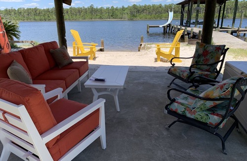 Completely Renovated and Remodeled ! Are you tired of staying in a cookie cutter condo and fighting for a space on the beach? If so, look no further than Papa Roy's Paradise! Papa Roy calls his paradise the Peace & Contentment Lodge or the P&C Lodge. His mantra is 'Do nothing and rest afterwards.' Located on Spring Branch just off of Perdido Bay, Papa Roy's Paradise is a little slice of heaven. You can drink coffee in the glassed porch and watch for dolphins or relax with a cocktail on the beach and view the sunset. Inside, there are two bedrooms, a large living area, a fully equipped kitchen, and a spacious glassed/screened porch. For your outdoor pleasure, there are kayaks, paddle boards and even a slide on the dock. On the white sandy beach, there is a gazebo with a sitting area and a grill. Bring your boat and fishing gear! With a little luck, you can catch fish and crabs. In ten minutes, by boat or car, you can be at Pirate's Cove enjoying one of their cheeseburgers in paradise and drinking a world famous bushwhacker. Also, there are many other restaurants located in the area that specialize in local seafood. The sugar sand beaches of Gulf Shores and Pensacola are a short drive away. Fresh fruit and vegetable stands abound in the area! The butchers at the Elberta Grocery will cut your filet, t-bone or porterhouse to order and wrap it in wax paper. They also make and sell the finest sausage in Baldwin County.