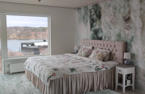 The neighbourhood has a grocery store about 800m away, a tram station about 850m away and enough boat places. Overlooking the Baltic sea, you get gorgeous views from the master bedroom and the 2 balconies on the top floor.